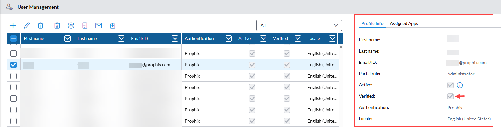 You can view a user’s verification status in several locations within User Management. The Verified status indicates whether the user has completed the initial account setup, including setting a password and logging in for the first time. Reviewing this information helps you follow the correct onboarding steps.